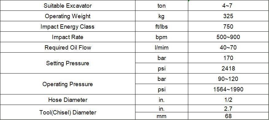 Engineered for 4–6.5-ton carriers, the SK40’s side-mounted layout improves operational control in secondary rock breaking and mining applications. High-strength alloy steel tools and precision-machined valve systems deliver dependable performance under abrasive working conditions. At 268 kg, it maintains carrier stability while supporting 38–68 L/min hydraulic flow. An optional centralized lubrication system is available to decrease service frequency. Constructed using normalized heat treatment for enhanced structural integrity. Compatible with leading brands and backed by a 3-year assurance warranty for severe-duty environments.