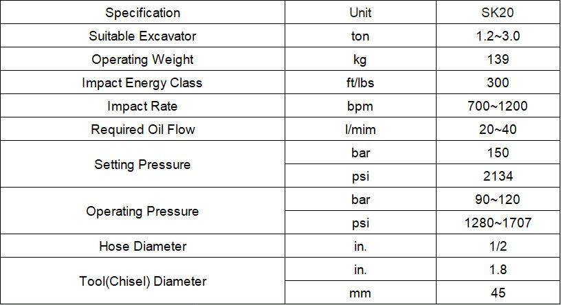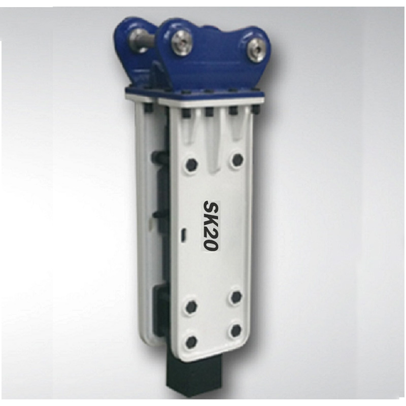 Designed for 1.2–3 ton excavators, the Rocka SK20 Open-Type Hydraulic Breaker delivers agile power and enhanced control in demanding environments. Its optimized open-frame design ensures better sightlines and operational precision during trenching and concrete breaking. The breaker integrates high-strength 42CrMo steel tools and precision-machined pistons for consistent impact energy and extended service life. Weighing 121 kg, it maintains a balanced load on the equipment while performing effectively in demolition, road repair, and construction tasks. An optional centralized lubrication system is available to support maintenance efficiency. Constructed using heat-treated alloy steel components,  and other international machinery brands, the SK20 is CE certified and backed by a 3-year warranty, making it a dependable choice for infrastructure and urban development projects.
