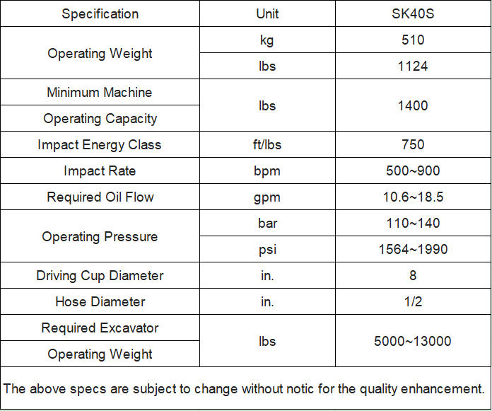 Designed for a wide range of excavators with operating weights between 7,500 – 15,000 lbs.