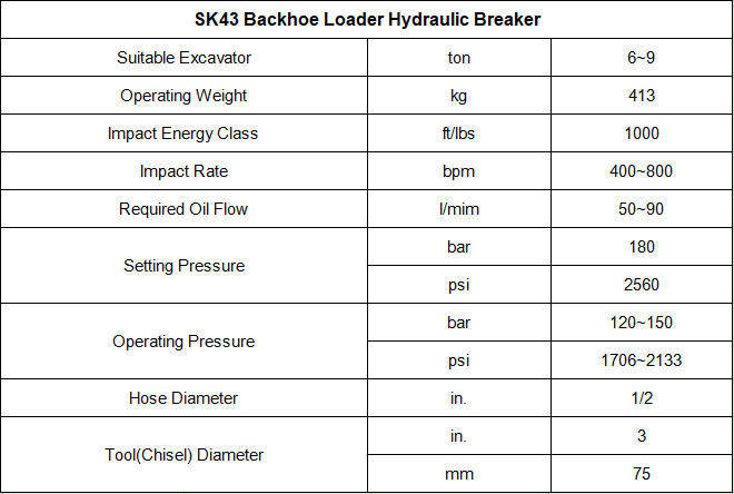 Rocka SK43 Backhoe Loader Hydraulic Hammer – Optimized Performance for Construction Applications