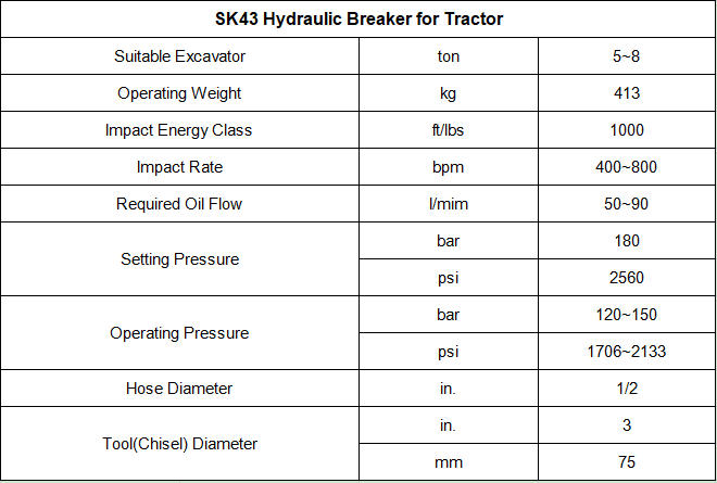 - Optimal parameter combination: 3-inch chisel + 120-150 bar pressure delivers strong impact force, suitable for tough breaking tasks (e.g., road construction, mining).