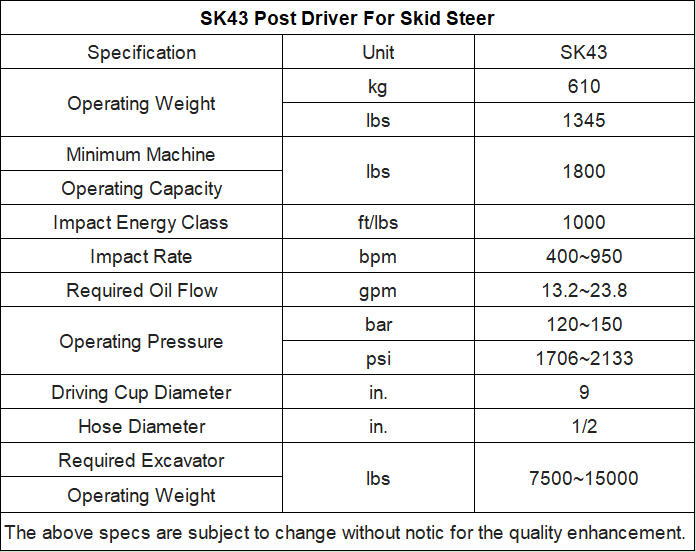 SK43 Hydraulic Post Driver for Skid Steer Loader: Features & Maintenance